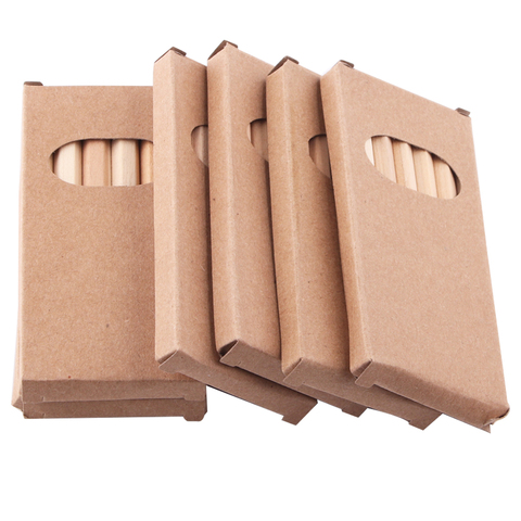 Op Maat Gemaakte Kinderen Kleine Houten Mini 6 Stuks Natuurlijke Kleur Potlood Set Box Gift Regenboog Tekening Gekleurd Potlood
